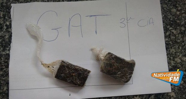 Dois pequenos tabletes de maconha foram apreendidos durante a tarde desta quarta-feira (12), por policiais militares lotados no Grupamento de Ações Táticas (GAT -3ªCia.), na zona rural de Natividade.