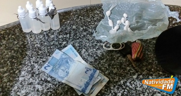 Um deles, ao perceber a aproximação dos militares, se desfez de uma sacola plástica, na qual estavam 12 sacolés de cocaína e sete frascos contendo um líquido entorpecente, conhecido como “cheirinho da loló”.