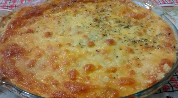 - Em um refratário forre a metade do purê de batatas,uma camada de queijo e a carne moída, o restante do purê finalize com mais queijo mussarela e polvilhe queijo ralado por cima