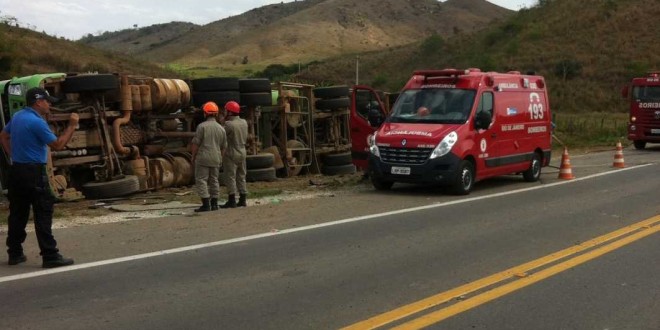 Caminhoneiro morre após carreta tombar na BR 356 entre Itaperuna e Italva