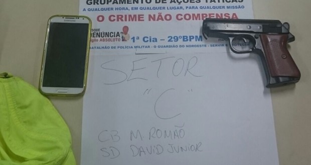 De acordo com testemunhas, que presenciaram a ação, o suspeito acompanhado de outro rapaz, A.J.S.N., de 23 anos, teria abordado S.M.O.V., de 17 anos, lhe ameaçando com uma réplica de pistola e roubando seu telefone celular Samsung Galaxy. Os agentes foram acionados e com base na descrição fornecida pela vítima, localizaram o rapaz, encontrando com ele, o celular e o simulacro. O caso seguiu para a 143ª Delegacia Legal, onde Carlos Alberto foi autuado em flagrante recolhido na manhã desta terça-feira (13) à carceragem da Casa de Custódia da cidade. O outro envolvido acabou liberado para responder em liberdade.