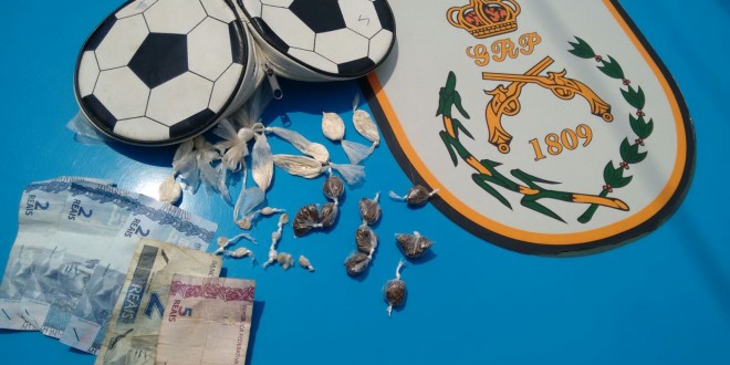 Policiais militares do 36º BPM apreenderam um menor, com quem encontraram drogas e dinheiro, durante esta quarta-feira (21), no Morro da Jove, periferia de Miracema. Os agentes receberam denúncia anônima e seguiram para a Rua Manoel Couto Paiva, em um dos becos da comunidade, onde abordaram o adolescente S.L.P.B.S., de 15 anos, com quem de início, localizaram três buchas de maconha.