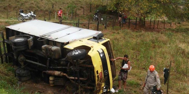 Duas pessoas ficaram feridas em acidente envolvendo um caminhão Mercedes Benz, do tipo baú, com placa de Iconha (ES), no final da manhã desta quinta-feira (29), na altura do quilômetro 65 da BR 356 (Curva do Homero), próximo ao trevo de acesso ao distrito de Boa Ventura, Itaperuna.