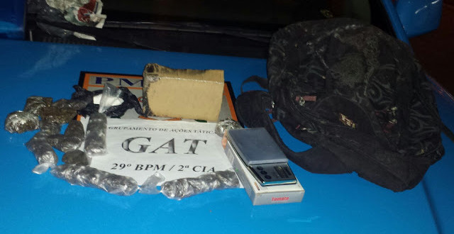 A PM voltou a apreender drogas em Bom Jesus do Itabapoana durante a noite desta sexta-feira (06). De acordo com informações apuradas pela Rádio Natividade, os agentes teriam sido acionados após denúncia anônima e seguiram para a Rua Castro Alves, bairro Pimentel Marques, onde após revista em um imóvel abandonado, localizaram dentro de uma mochila, 60 buchas de maconha, diversos tabletes com cerca de meio quilo da erva, uma pedra média de cocaína, além de balança de precisão. Ninguém foi preso, mas de acordo com a polícia, o material pertenceria a um elemento já conhecido das autoridades. O caso seguiu para registro na 144ª Delegacia Legal.