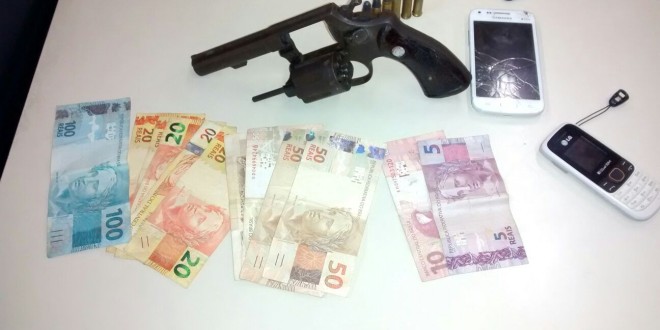 Ao ser abordado um moto táxi clandestino, na Rua Júlio César, no bairro Vinhosa, encontraram o envolvido que tinha em seu poder, um revólver calibre 38, com seis munições intactas no tambor, além de R$ 415,00 em dinheiro (foto). A ocorrência foi apresentada na 143ª Delegacia e o suspeito, autuado em flagrante por porte ilegal de arma, ficando à disposição das autoridades. O delegado Márcio Caldas, estipulou fiança de três salários mínimos como condição para que o rapaz pudesse responder em liberdade. Até o fechamento desta matéria, a quantia ainda não havia sido quitada.