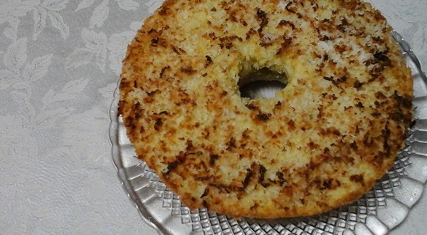 - Coloque o coco ralado reservado em cima e leve ao forno baixo por 50 minutos