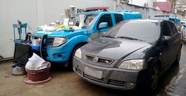 De acordo com os PMs, no momento em que chegaram na casa que fez parte do levantamento, o local estava vazio e em um dos cômodos da casa foram apreendidos 15 tabletes de cocaína, pesando cerca de dois quilos cada, quatro invólucros de cocaína pura, três sacolas plásticas com misturas da cocaína, um vidro de cafeína anidro (também usado na mistura da droga), duas balanças de precisão, rolos de fitas adesivas, quatro liquidificadores, dois industriais, uma prensa no valor de aproximadamente R$ 10 mil,panelas, bacias e um TV de 32 polegadas.