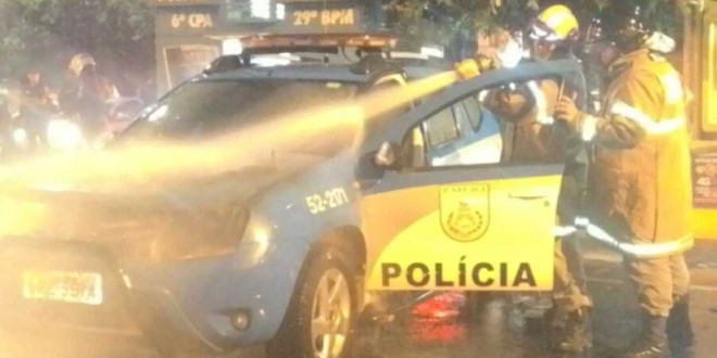 A viatura prefixo 52-2171, pertencente à Polícia Militar do Estado do Rio de Janeiro, se incendiou durante a noite desta quarta-feira (16), na Avenida Cardoso Moreira, centro de Itaperuna. O veículo Renault, modelo Duster, que realizava patrulhamento de rotina, transportava dois policiais do 29º BPM, quando repentinamente começou a exalar fumaça do compartimento do motor e em poucos minutos, as chamas tomaram a parte frontal do automóvel, que ficou parcialmente destruído. Bombeiros do 21º GBM seguiram para o local e controlaram o incêndio, que não causou ferimentos em nenhum dos agentes.