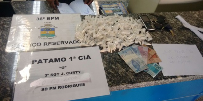Duas pessoas, que seriam tia e sobrinho, foram presos nesta quarta-feira (03), por policiais militares do 36º BPM, durante cumprimento de mandado de busca e apreensão no interior de uma residência, na esquina da Rua Elias Simão com a Travessa São José, no bairro São José, em Santo Antônio de Pádua. No imóvel, pertencente à balconista Rosana Santos Cunha Liberatori, de 43 anos, foram localizados 200 pinos de cocaína, um caderno com supostas anotações do tráfico e R$ 129,00 em dinheiro, escondidos em seu quarto.