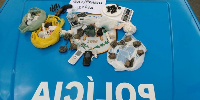 Dois homens foram presos em flagrante e outras quatro pessoas, entre as quais três mulheres, conduzidos até a 143ª Delegacia Legal, após policiais militares do 29º BPM apreenderem arma e drogas, na Avenida João Bedim, no bairro de mesmo nome em Itaperuna, durante a tarde desta segunda-feira (22).