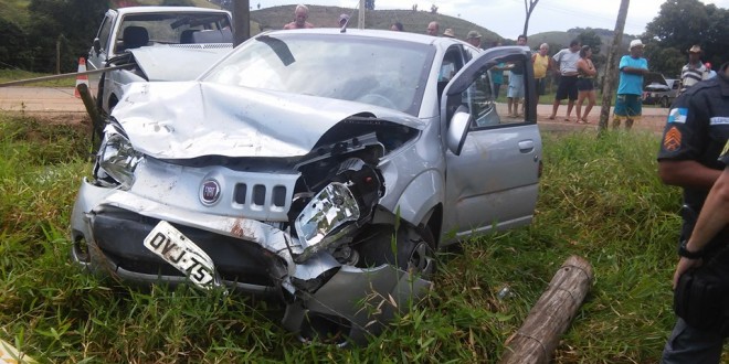 Pelo menos três pessoas ficaram feridas em acidente registrado no final deste domingo (28), na RJ 214 na saída de Varre-Sai, sentido à Guaçuí (ES). Testemunhas afirmaram que o Fiat Uno, de cor prata, placa OVJ 7579, conduzido por João Carlos de Sá, de 49 anos, se chocou com o Volkswagen Voyage, cinza, placa MPG 7224, dirigido por Nilson Oliveira Vargas, de 84 anos.