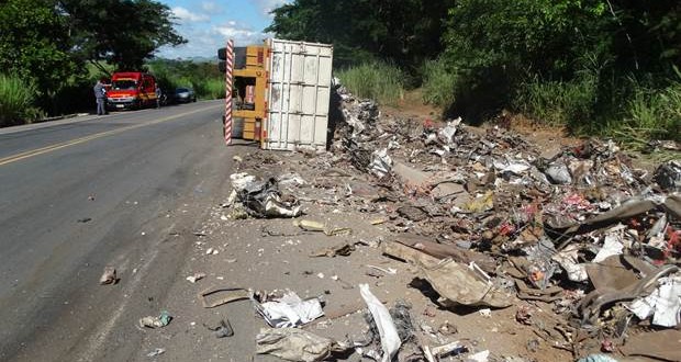 Uma carreta, com placa de Viana-ES, carregada com sucata, tombou na BR 356 – Muriaé – Itaperuna – no meio da Serra da Pratinha na manhã deste domingo (06). O motorista que seguia no sentido a Muriaé perdeu o controle da direção do veículo. Um dos pneus estourou, o caminhão tombou se arrastando por vários metros. O condutor sofreu apenas ferimentos leves e foi encaminhado pelos Bombeiros para o Hospital São Paulo. A PRF esteve no local para as devidas providencias.