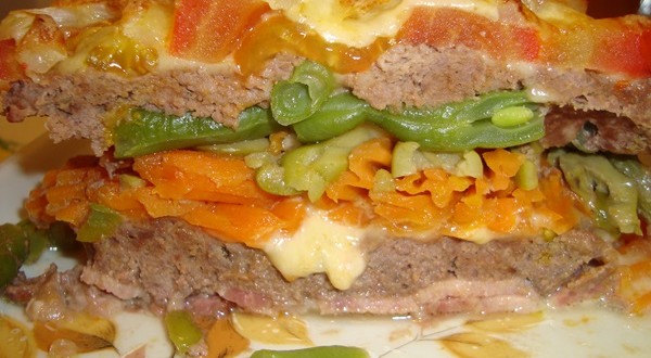7. A outra camada de carne e por cima o tomate e a cebola em rodelas