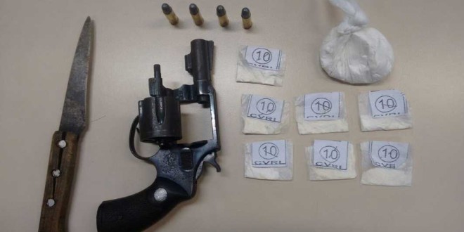 Enquanto corria, o maior tentou se desfazer de uma sacola onde estava um revólver calibre 32 com quatro munições, faca,  sete papelotes de cocaína e outra bucha do mesmo pó. Ambos foram conduzidos à 137ª Delegacia e autuado por tráfico e associação ao tráfico. Fransislei da Silva acabou recolhido à Casa de Custódia de Itaperuna e o infrator, deverá ser apresentado ao Ministério Público.
