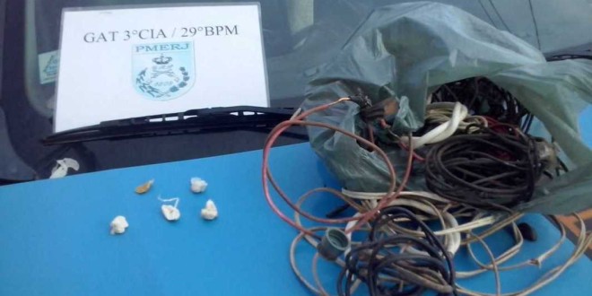Confrontado pelos agentes, o maior admitiu ter convidado o menor para juntos, furtarem fios e cabos elétricos da residência que se encontrava desocupada, na qual após buscas se encontrou ainda, cinco papelotes de cocaína (foto), supostamente pertencentes aos envolvidos. Eles no entanto, negaram. Na 139ª Delegacia, Marlon acabou autuado em flagrante por tentativa de furto e corrupção de menores, sendo recolhido à Casa de Custódia de Itaperuna e o menor, deixado aos cuidados da mãe, para posterior apresentação ao Ministério Público.