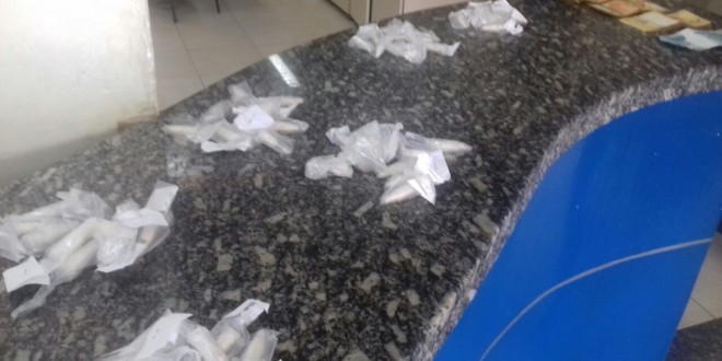 Agentes do Serviço Reservado do 36º BPM apreenderam nesta quarta-feira (30), dezenas de pinos de cocaína, Rua Genecy Coelho da Silva, no bairro Ponte Seca, periferia de Aperibé. Denúncia anônima dava conta que elementos estariam realizado tráfico no local e ao se deslocarem ao ponto indicado, um suspeito que estaria armado e fazendo a segurança dos demais, ao perceber a aproximação dos militares, conseguiu fugir. No entanto, sob um Fusca onde estavam, os PMs encontraram uma sacola como 59 pinos do entorpecente, além de R$ 400 em dinheiro. Quatro homens que estavam nas proximidades foram conduzidos até a 136ª Delegacia de Pádua, onde prestaram depoimento e acabaram liberados por falta de provas.