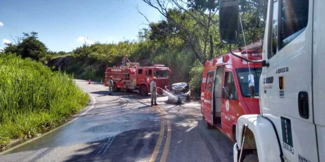 Colisão entre carro e caminhão deixa um ferido na RJ 198, em Itaperuna
