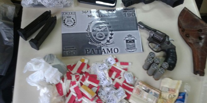 No imóvel foram apreendidos uma Pistola, marca Taurus, cal. 9mm, com dois carregadores e dez munições intactas; Uma mochila contendo 223 papelotes pequenos e outras duas sacolas plásticas com cocaína; anotações e contabilidade do tráfico de drogas; um revólver cal. 32 desmuniciado; Um coldre de couro para revólver; Seis munições cal. 12, intactas; R$ 20 em dinheiro; três celulares; material para endolação e documentos.