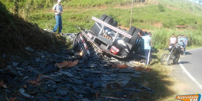 Um grave acidente, durante a madrugada desta quinta-feira (07), deixou o saldo de uma vítima fatal na RJ 214, nas proximidades do limite entre os municípios de Natividade e Varre-Sai. De acordo com testemunhas, o motorista ainda não identificado, que conduzia o caminhão placa MRL 6888/Cachoeiro do Itapemirim, carregado de pedras, descia a serra, quando numa curva fechada, na altura da Bela Vista, perdeu o controle da direção e capotou às margens da rodovia.
