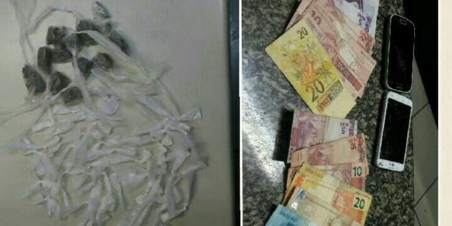 A Vara da Infância, Juventude e Idoso de Itaperuna, determinou a apreensão do estudante J.M.B., de 15 anos, flagrado na madrugada desta terça-feira (26), com 13 buchas de maconha, 54 papelotes de cocaína, celulares e R$ 310 em dinheiro. Acompanhado de outro menor, L.B.T.S, de 17, o infrator foi abordado por policiais militares, na Rua Castello Branco, no bairro Aeroporto. Ele cumprirá medida socioeducativa em uma unidade especializada em Campos do Goytacazes. Já o mais velho, acabou liberado.