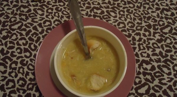 - Deixe ferver, logo em seguida coloque o peito, o milho verde, o caldo de galinha dissolvido em 2 xícaras de água, deixe ferver mais um pouco e é só servir com o cheiro verde à vontade