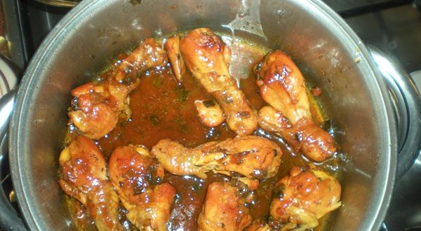 - De 5 em 5 minutos mexa o frango, virando as partes para dourar por inteiro