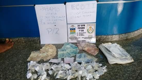 A ação de combate ao tráfico de drogas nesta terça-feira (03), em Aperibé resultou na prisão de três pessoas, no local conhecido como “Praça das Casas Populares”, no bairro Ponte Seca. Policiais do 36ª BPM apuravam denúncia anônima, quando avistaram Lucas Matheus Diniz dos Santos, de 20 anos, que ao perceber que estava sendo monitorado, tentou fugir, mas acabou alcançado pelos militares tentando se desfazer de uma sacola, com 85 pinos de cocaína, que ele havia jogado no quintal de uma das casas. Também foram arrecadados com o suspeito, cerca de R$ 85 em dinheiro e anotações sobre o crime.