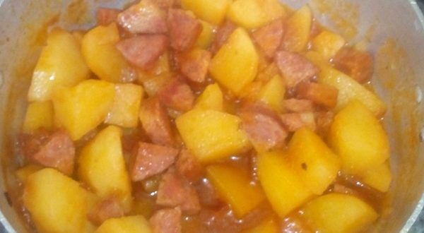 2. Deixe dar uma fritada e coloque a linguiça cortada em rodelinhas