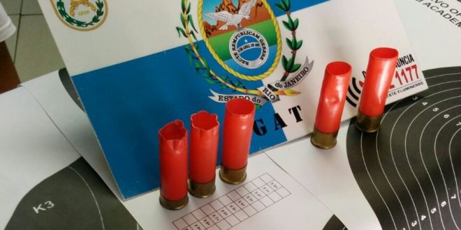O suspeito não se encontrava e a revista foi acompanhada por familiares, que puderam presenciar o momento em que os militares encontraram cinco estojos deflagrados de munição calibre 12, além de três alvos, usados para treinamento de tiros (foto). Pouco antes, outro endereço do envolvido já havia sido vasculhado, na Rua David Ferreira de Souza, no bairro Jardim Valéria, porém, nada de ilegal foi localizado.