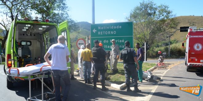 Duas pessoas ficaram feridas em acidente registrado no final da manhã desta terça-feira (05), no trevo de acesso à Natividade, próximo o pórtico de entrada. De acordo com informações de testemunhas, o motociclista Pedro Henrique Da Silva Matos, de 20 anos, que pilotava a Honda NXR 150 Bros, de cor vermelha, deixava a RJ 214 (Raposo) para ganhar o perímetro urbano da cidade, quando por volta das 11:30h, teria colidido de frente com um ciclista, Geraldo Felício Antônio, de 63, que supostamente trafegava na contramão da via.