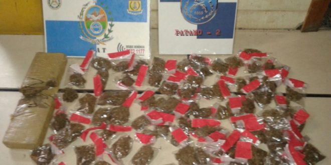 Após receberem denúncia de que um menor estaria transportando drogas de um bairro para outro, em Itaperuna, militares do 29º BPM montaram operação na estrada do Colibri, zona rural da cidade, onde abordaram um táxi, onde estava o adolescente W.V.T., de 17 anos, com quem encontraram 88 buchas e outros dois tabletes de maconha (foto).