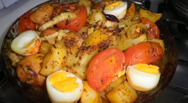 - Besunte as coxas e sobrecoxas com a margarina, disponha as rodelas de batatas e cenoura ao redor e cubra o refratário com papel alumínio