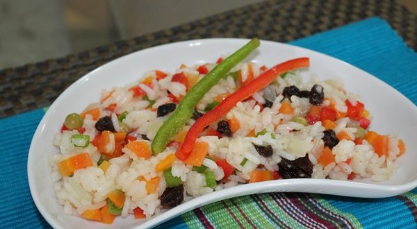 - Aqueça o óleo e refogue o arroz junto com os pimentões e a cenoura
