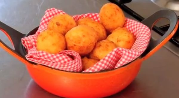 - Com o auxílio de duas colheres pequenas, dê o formato de bolinhas e frite em gordura quente
