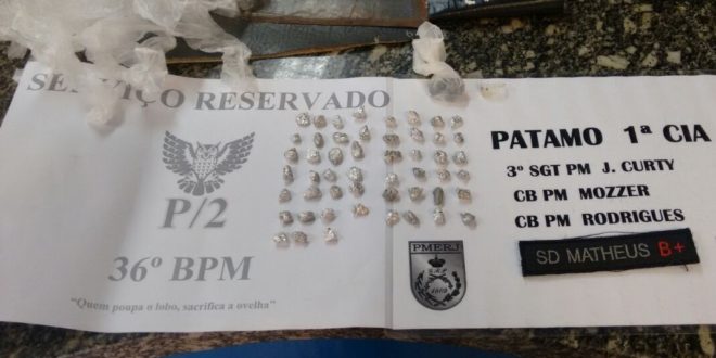 De posse de mandado de busca e apreensão expedido pela juíza Cristina Sodré Chaves, policiais militares do 36º BPM, seguiu para a Rua Pedro Parreira Filho, no bairro Gerador, Santo Antônio de Pádua, onde vasculharam a residência do adolescente L.S.M., de 16 anos, onde localizaram 51 pedras de crack, uma bucha de maconha, além de material para endolação. O rapaz, que já teria envolvimento com o tráfico local, seguiu para a 136ª Delegacia, onde por determinação da autoridade policial, permaneceu detido, para posterior apresentação ao Ministério Público.