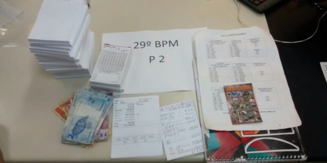 Policiais militares do 29ª BPM detiveram um homem, com quem aprenderam material usado na prática do jogo do bicho nesta terça-feira (29), no bairro Vinhosa, Itaperuna. De posse de denúncia anônima, os PMs se deslocaram até a Rua Benedito Nicolau, onde no imóvel pertencente à W.A.B., de 58 anos, localizaram 20 talões numerados em branco, quatro talões de comanda, tabelas, controle financeiro, cadernos de anotações, dentre outros, além de R$ 115,00 em dinheiro, provavelmente oriundo das apostas. Levado até a 143ª Delegacia, o envolvido admitiu que o material de fato pertencia e responderá em liberdade por contravenção.