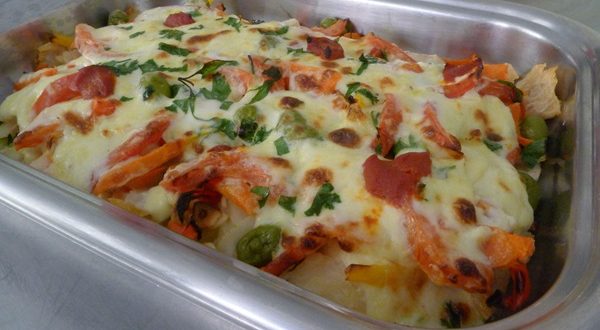 - Coloque num refratário com o molho forrando a forma e cobrindo com ele