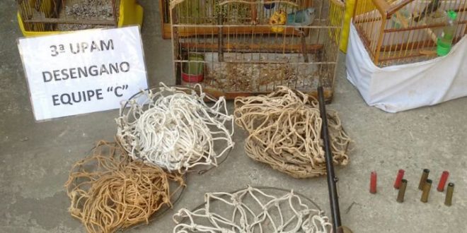 Ação deflagrada nesta quarta-feira (07), por policiais ambientais lotados na 3ª UPAM/Parque Desengano, ter minou com um homem detido, no bairro Frigorífico, Itaperuna. Após receberem denúncia anônima, os agentes seguiram para a Rua Francisco Abreu, onde com autorização do proprietário, realizaram buscas no interior da residência de R.C.N., de 50 anos, onde localizaram uma espingarda calibre 32 com seis cartuchos intactos, cinco muzangas (armadilha para caçar tatús), além de 12 pássaros, entre os quais, dois melros, três trinca-ferros, cinco coleiros, um sanhaço e outro godero, ambos sem nenhum tipo de licença para serem mantidos em cativeiro. Na 143ª Delegacia, o envolvido acabou autuado em flagrante por posse ilegal de arma e crime ambiental, mas pagou fiança no valor de R$ 1 mil e responderá ao processo em liberdade. As aves seguiram para o próprio Parque Estadual, onde passarão por avaliação e se possível, devolvidas ao seu habitat natural.