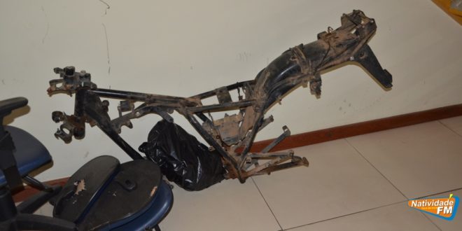 Um quadro de motocicleta, sem demais peças, foi encontrado abandonado na Rua José Duarte dos Santos, em Varre-Sai. Policiais militares do DPO local, foram acionados por moradores e seguiram para o endereço indicado e apreenderam a “carcaça”, que contém registrada o número de chassi, que será investigado. O material permanece retido na 140ª Delegacia de Natividade, onde será submetido à perícia (foto). Não foram arroladas testemunhas.