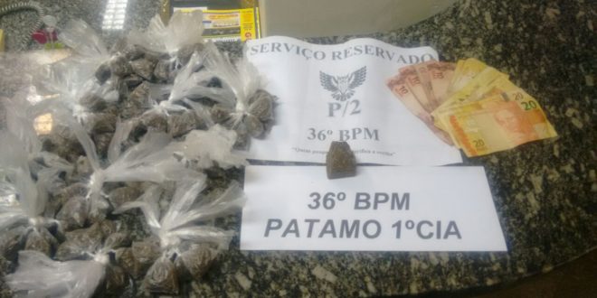 Dois jovens foram flagrados por policiais militares do 36º BPM no momento em que embalavam drogas, no interior de uma residência, na Rua Expedicionário Francisco Borges da Silva, no bairro Beira Rio, Santo Antônio de Pádua. Após receberem denúncia anônima, os militares realizaram buscas no interior do imóvel, onde encontraram 111 buchas e outro tablete de maconha, totalizando cerca de 230 gramas da erva, além de R$ 180 em dinheiro (foto). Gabriel Procóprio Dias, de 28 anos e o adolescente J.D.C.S., de 17, seguiram para o plantão da 136ª Delegacia, de onde o primeiro acabou transferido para a Casa de Custódia de Itaperuna e o menor, permaneceu detido para posterior apresentação ao Ministério Público.