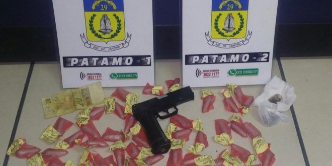 Questionados, ambos confirmaram que o entorpecente seria entregue a outro suspeito de 25 anos, que estava próximo, mas assim que percebeu a operação, conseguiu fugir, acompanhado de uma mulher de 29, deixando para trás, uma réplica de pistola (foto). Já na residência deste último, os agentes encontraram cerca de sete gramas de maconha. Levados até a 143ª Delegacia, os detidos foram autuados por tráfico e associação ao tráfico de drogas e transferidos na manhã desta quarta-feira (19), ao sistema prisional.