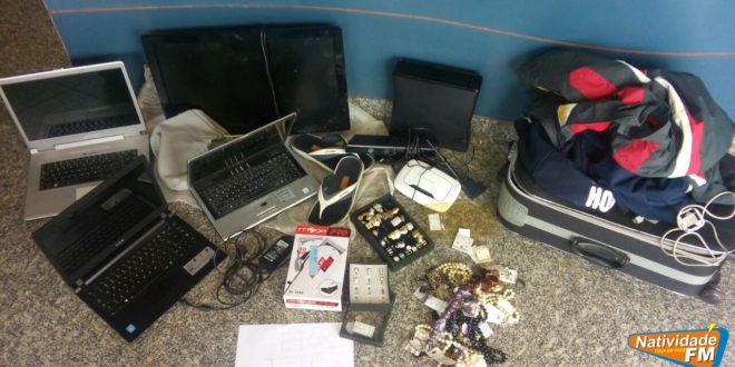 Um jovem foi preso em flagrante e outro adolescente detido, durante este domingo (30), no município de Porciúncula, após terem sido acusados de furtar uma residência, no distrito de Purilândia. De acordo com o vigilante L.F.Q., de 41 anos, seu imóvel na Rua Geraldino Silva, teria sido invadido e de seu interior, levados três notebooks, um roteador de internet, câmera, vídeo game, TV, além de várias bijuterias, entre cordões, anéis e brincos.