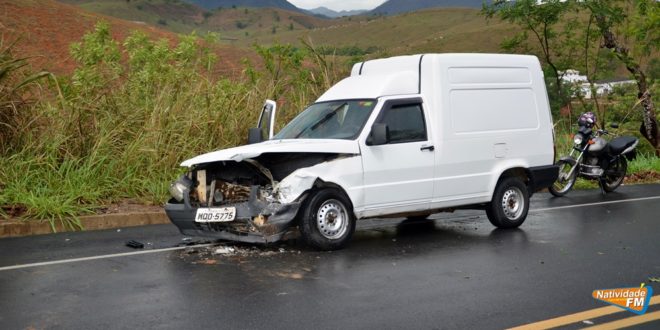 Dois veículos bateram de frente na tarde desta terça-feira (08), na RJ 220, próximo ao bairro Parque Lajinha, Natividade. De acordo com informações colhidas no local pela reportagem da Rádio Natividade, o GM modelo Corsa, com placa de Muriaé (MG) seguia sentido à Itaperuna, quando teria quebrado a barra de direção, fazendo com que seu motorista perdesse o controle, invadisse a contramão e se chocado contra com o Fiat Fiorino, registrado em Cachoeiro do Itapemirim (ES). Apesar dos danos materiais, os motoristas saíram ilesos. A Polícia Militar foi acionada e os veículos, removidos por guincho particular.