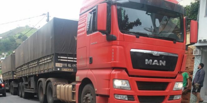 Uma carreta do tipo bi-trem, carregada com 70 toneladas de milho, apresentou defeito por volta das 15h desta quarta-feira (30), prejudicando o trânsito na já estreita Rua Basílio de Lannes, no bairro Bagaceira, principal via de acesso aos distritos de Natividade, além de Varre-Sai e Espírito Santo, para onde seguia. O local segue em meia pista, permitindo a passagem de apenas automóveis. O Departamento de Trânsito já foi acionado.