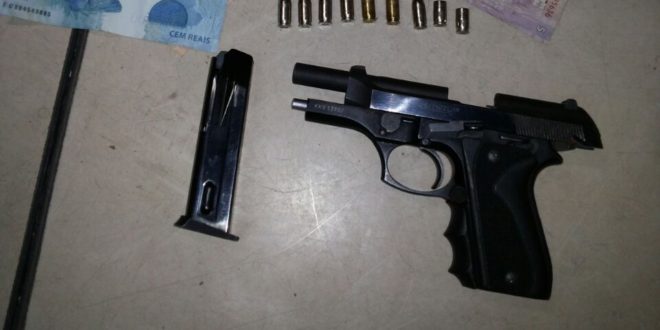 Policiais militares do 29º BPM prenderam neste final de semana, um homem acusado de disparo de arma de fogo, na Rua Pastor Joadir, Horto Florestal, na parte alta central de Itaperuna. Moradores ligaram para o serviço de radiopatrulha denunciando o envolvido, que assim que avistou a viatura, se escondeu dentro da própria residência, onde após buscas, os militares encontraram a pistola Taurus calibre 380 com carregador e munições.
