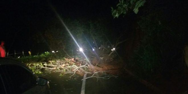 A forte chuva acompanhada de vento, causou queda de árvores e galhos no final da noite desta sexta-feira (09), na RJ 214, no trecho que liga Raposo, Itaperuna à BR 356 (próximo ao pórtico do distrito). A interdição da pista provocou a retenção de pelo menos 70 veículos e bombeiros do destacamento 4/21 de Natividade foram enviados ao local e desenterditaram da via. De acordo com informações da corporação até à 1h da madrugada deste sábado, além desta, nenhuma outra ocorrência, havia sido registrada.