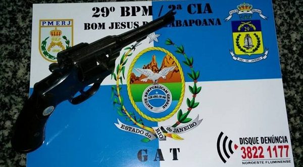 Um homem foi preso em flagrante por posse ilegal de arma de fogo na tarde desta terça-feira (13), na comunidade conhecida como “Loteamento Miguel Mota”, em Bom Jesus do Itabapoana. Militares da 2ª Companhia patrulhavam a cidade, quando receberam denúncia anônima e abordaram o servente B.B.F., de 26, que confirmou as informações e admitiu manter no interior de sua residência, na Rua Antônio Pereira, um revólver calibre 32. O artefato foi apreendido, apresentado ao plantão da 144ª Delegacia, onde o envolvido acabou atuado e permaneceu à disposição das autoridades. Não há confirmação do pagamento de fiança.