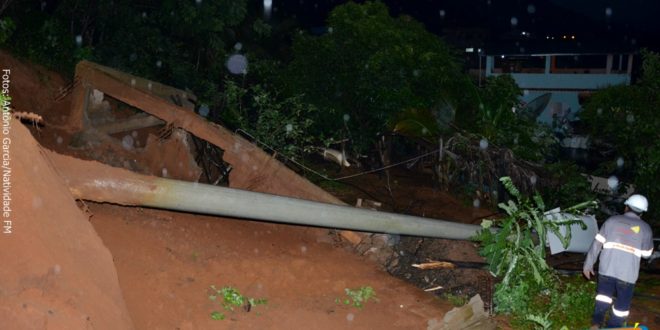 O caso mais grave até então registrado em razão das chuvas em Natividade, ocorreu no início da noite desta quinta-feira (15), quando três postes da concessionária Enel (antiga Ampla), despencaram sobre duas residências no bairro Morada do Engenho.