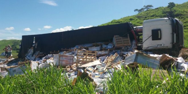 Uma carreta com placa de Cariacica/ES, carregada com livros didáticos, tombou na manhã desta quarta-feira (21) no km 64 da BR 356, no local conhecido como “Curva do Homero”, entre os municípios de Itaperuna e Italva, sentido no qual seguia. O acidente aconteceu por volta das 9h e no veículo, estava apenas o motorista, que não se feriu, recebeu atendimentos dos bombeiros e foi liberado ainda no local.