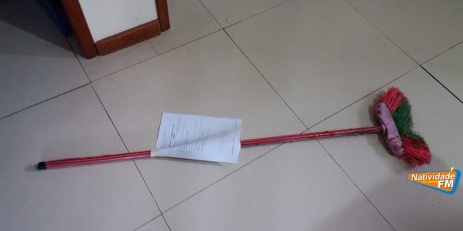Duas mulheres foram parar na delegacia após terem se envolvido em confusão na noite deste domingo (19), na Rua José de Lannes Dantas Brandão, no bairro Liberdade, Natividade. Militares do 29º BPM foram acionados por A.P.S.B., de 23 anos, que afirmou ter sido atingida por uma vassoura (foto), arremessada em sua direção pela companheira de seu tio, a manicure C.A.M.S., de 42. As partes já viviam conflito anterior e a mais jovem precisou passar por atendimento médico e levar quatro pontos na testa. Ambas prestaram depoimento na distrital.